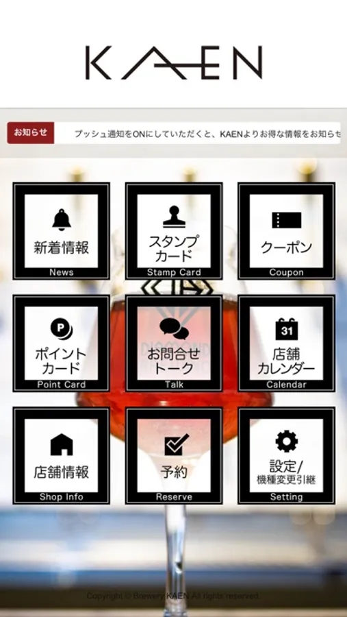 ・【KAEN】からの最新情報をプッシュ通知で受け取れます。