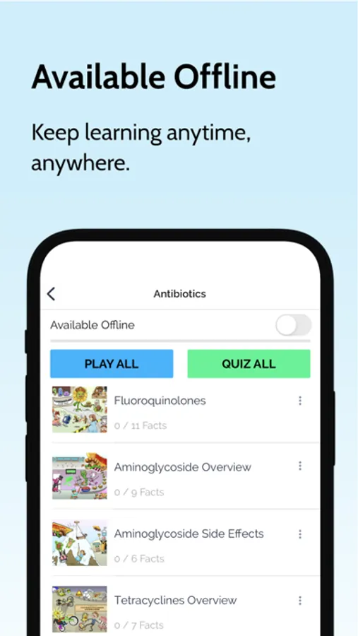 1,400+ entertaining 3-minute picture mnemonic video + quiz lessons covering 11,000+ key facts. Ditch boring textbook memorization, recall information faster and retain it longer to ace your basic sciences / didactic courses, clinicals and boards exams with less study time using unforgettable images and stories...it's Cliff Notes meets Saturday morning cartoons!