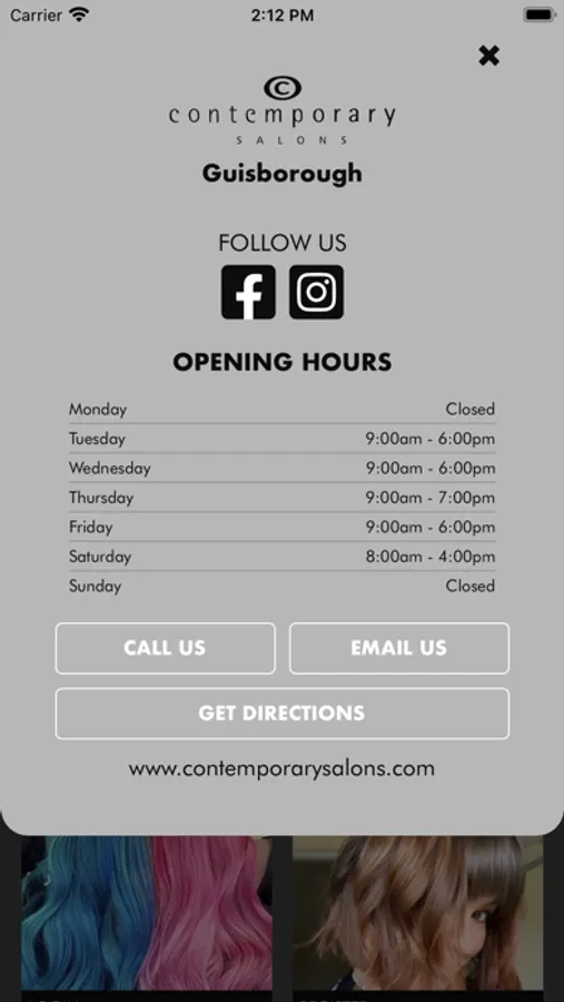 The Contemporary Salons booking app allows clients to log on and make bookings online under their own profile 24/7. Clients can track loyalty points as well as looking at historic and future bookings and get directions for their favourite salon.