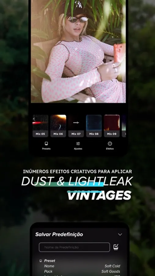 Com poucos cliques no celular, use em suas fotos a edição dos influencers mais badalados e dos melhores fotógrafos do mercado! Presets todos criados por profissionais e próprios para uso mobile!