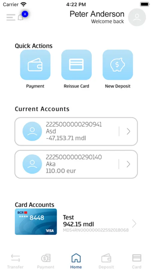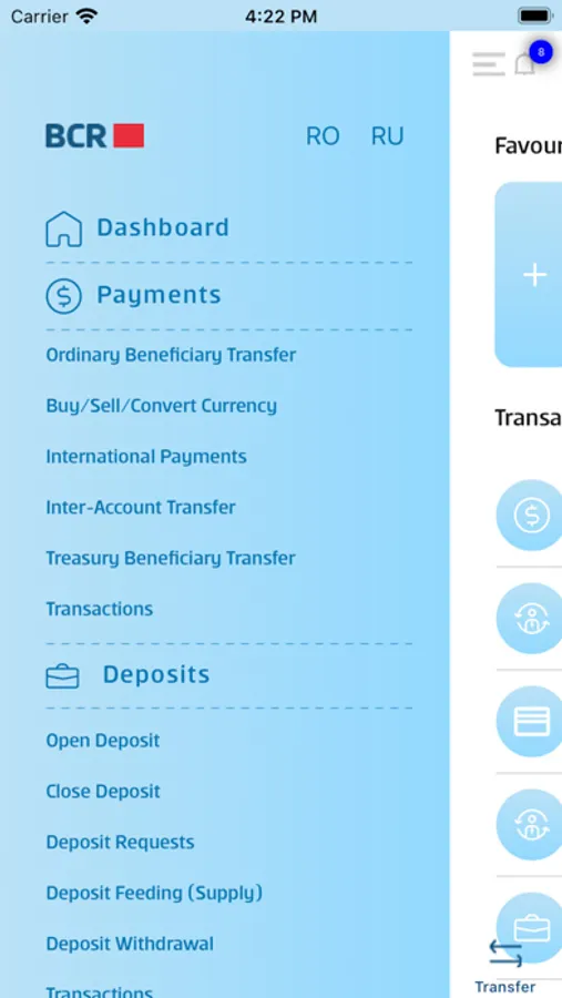 With Personal Mobile 24Banking from BCR Chisinau, you can perform the following types of operations on your device: