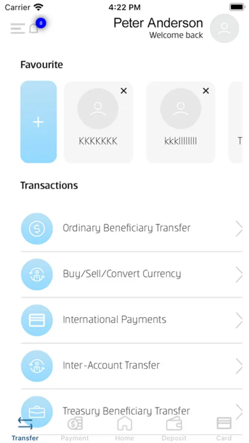 - Transfer between personal accounts