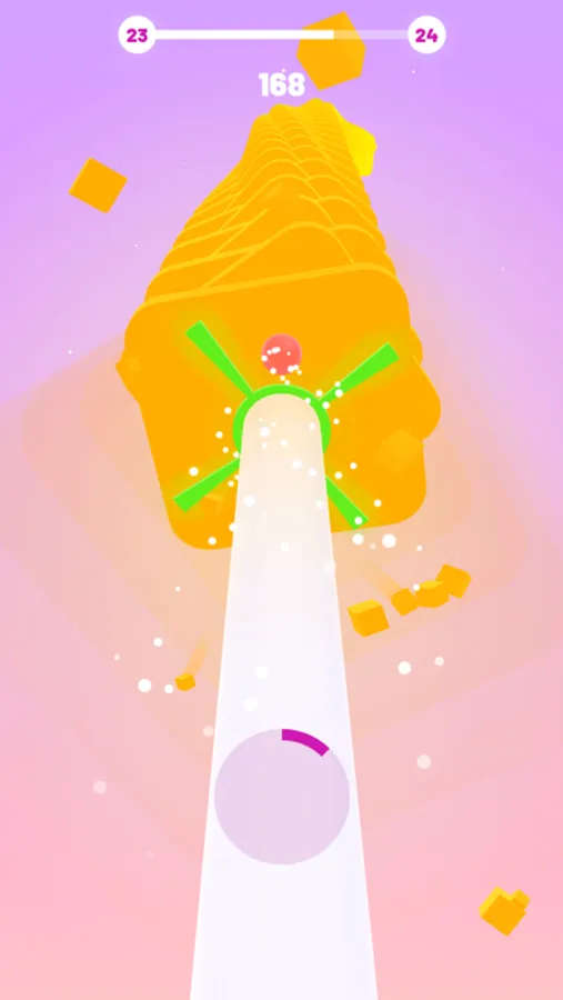 Smash the ball through the twisted range of blocks to the very end! Avoid bumping into wind sticks, speed up and get the coolest fireball powerup.
