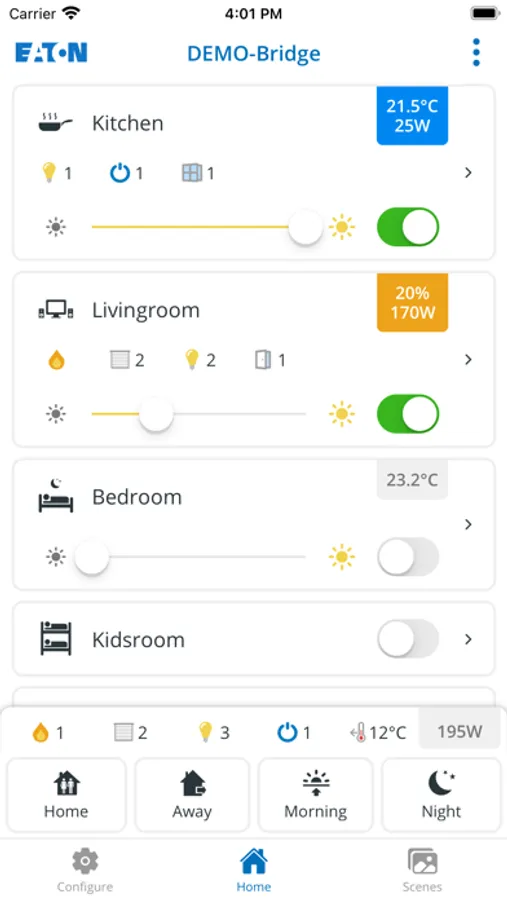 Necessary for the functionality: installed xComfort actuators and/or sensors.