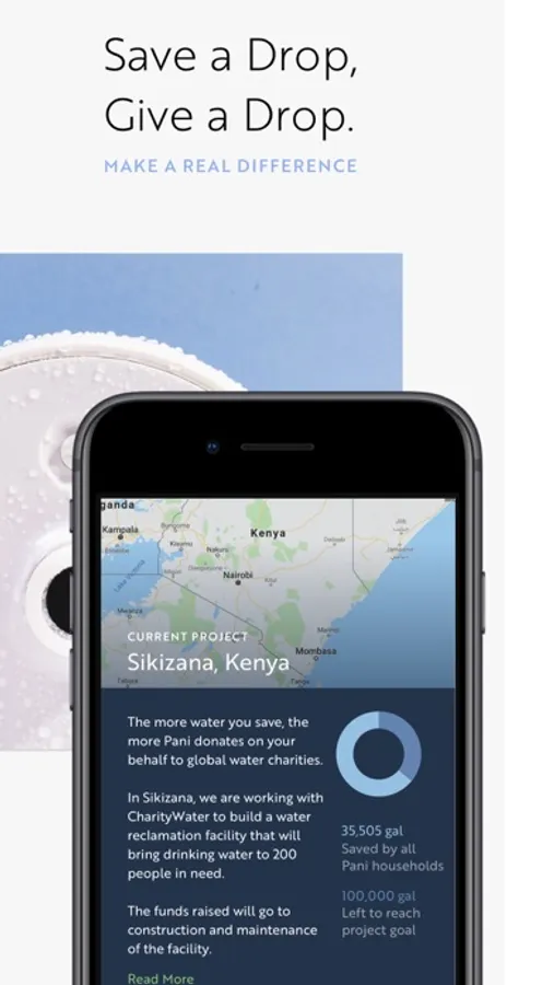 As you conserve water while using the Pani smart water monitor, Pani will make donations on your behalf to global water charities to provide clean water access to those in need. You can keep track of these water well projects directly in the app! So count your drops because every drop counts!