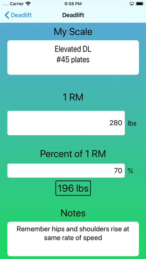 WODable also keeps up with your 1RMs (One Rep Max), weights you use for each move, calculates % of 1RMs, and space to write notes/reminders for each move. This handy app is just what you need to WOD with confidence!
