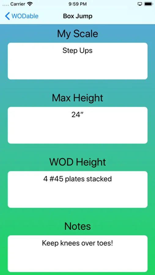 Keep track of all your scales for all the key CrossFit/weight training/fitness moves in one handy place – WODable! This app will remind you of how you should be scaling your workout to your ability. When the coach/trainer assigns you a scale, enter it into the app and you will always know how to make the WOD your own.