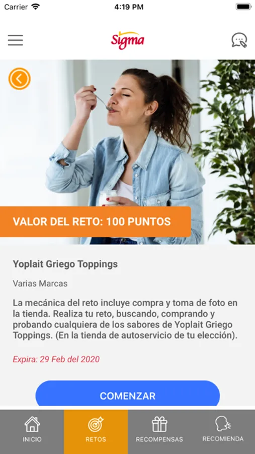 Sigma WIN-WIN es una app de Sigma (una empresa global líder en alimentos). Su objetivo es conocer las experiencias de cada uno de sus participantes cuando realizan una compra o elaboran sus alimentos en el día a día usando ciertos productos. Esto nos permite tener información que usaremos para mejorar sus experiencias y además se acumulan puntos que se podrán canjear por interesantes recompensas en forma muy rápida y sencilla.