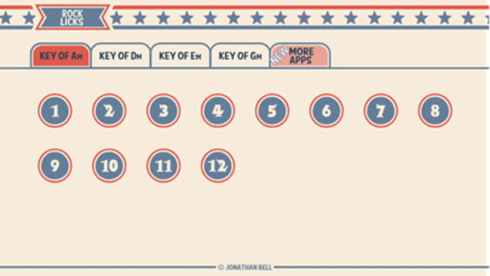 ● The licks are organised into the 4 most common rock guitar keys Am, Dm, Em and Gm.