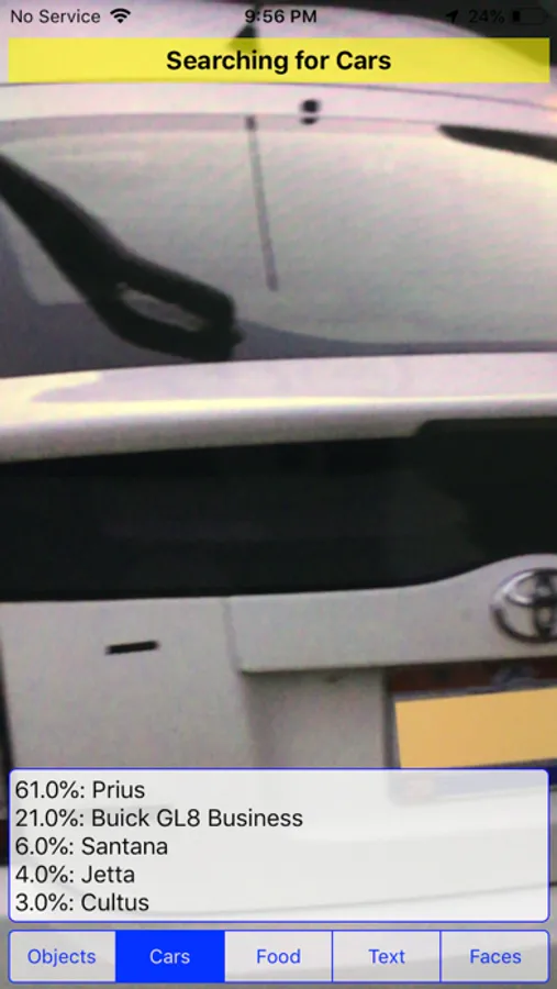 "CarRecognition" - This scans for makes and models of vehicles. It is very hit-or-miss and seems to heavily match automobiles from specific regions of the world. Most matches are the right body type but wrong make. This ML model is an example of mixed results in image recognition.
