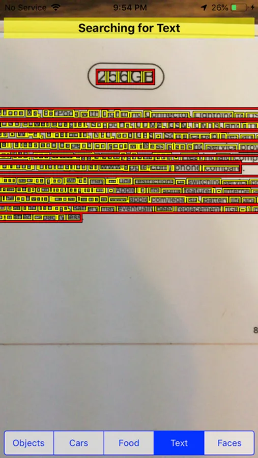 The "Text" mode looks for all potential text in view and highlights the words and individual characters in those words for easy viewing. It displays the top 5 rows of text by descending height.