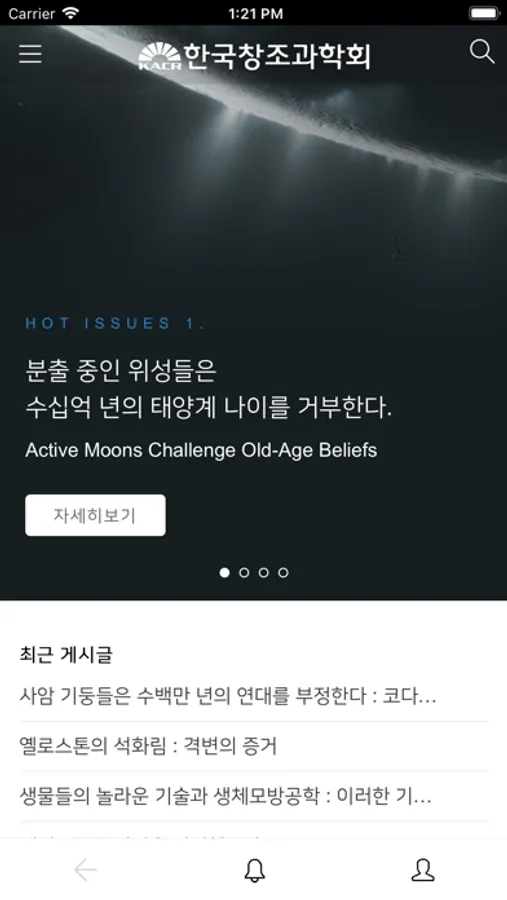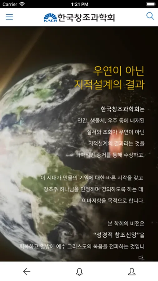 한국창조과학회 공식어플리케이션으로서 본학회는 인간, 생물체, 우주 등에 내재된 질서와 조화가
