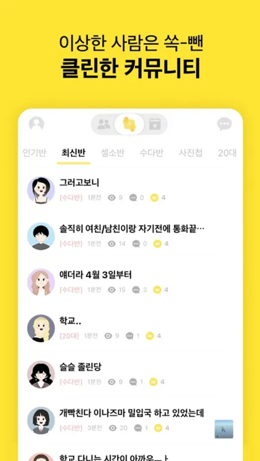 남녀공학'은 요즘 언니, 오빠들의 클린한 커뮤니티 앱이야.