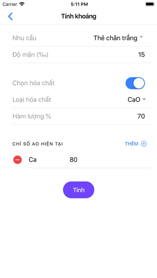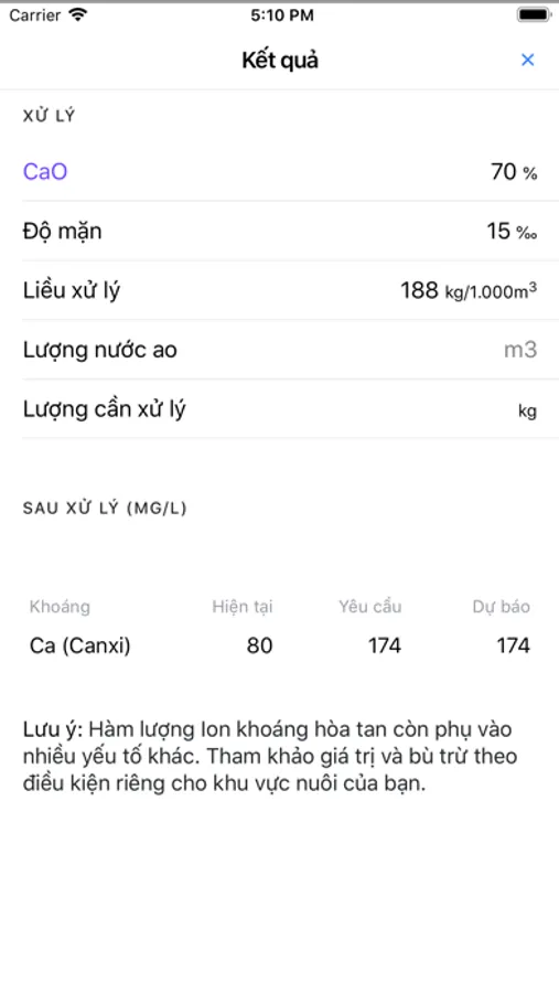 - Tính hóa chất cần bổ sung theo chỉ số khoáng trong môi trường