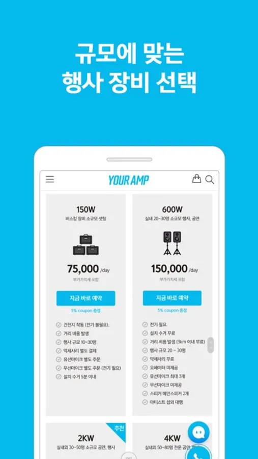 원하는 규모에 맞게 직접 행사 장비를 선택하고 대여 해보세요.