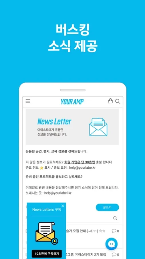 매주 금요일 아티스트 분들에게 유용한 소식을 모아 뉴스레터를 발송 합니다.
