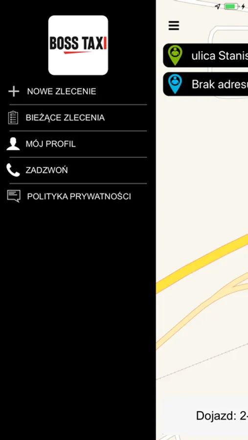 Application for ordering a taxi in Boss Taxi Company. Located in Zabrze Poland.