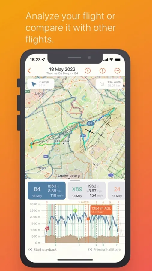 * Take a look at one or more flights at once. You can see the barograph for the different flights and even some more details as you replay them.