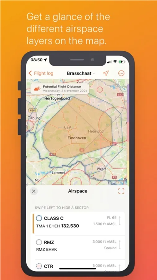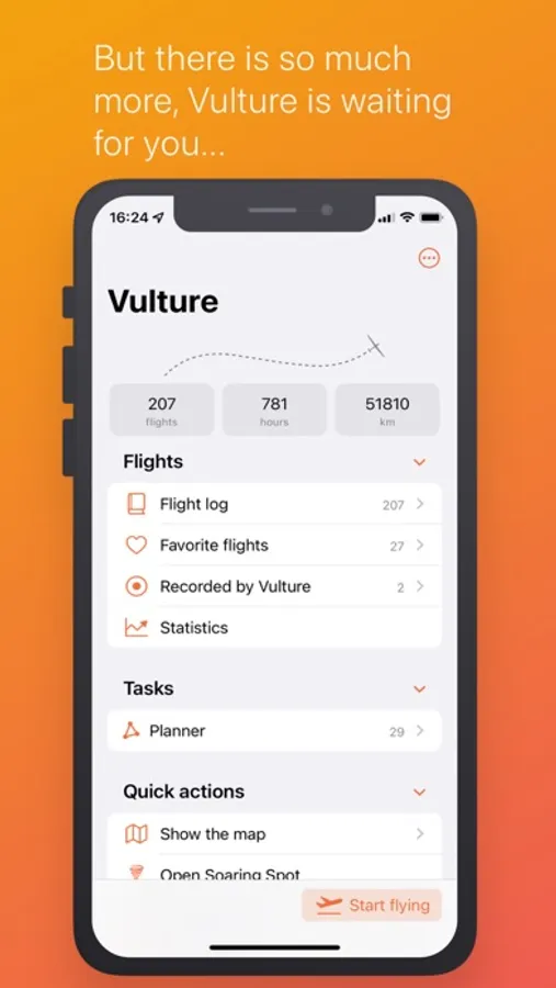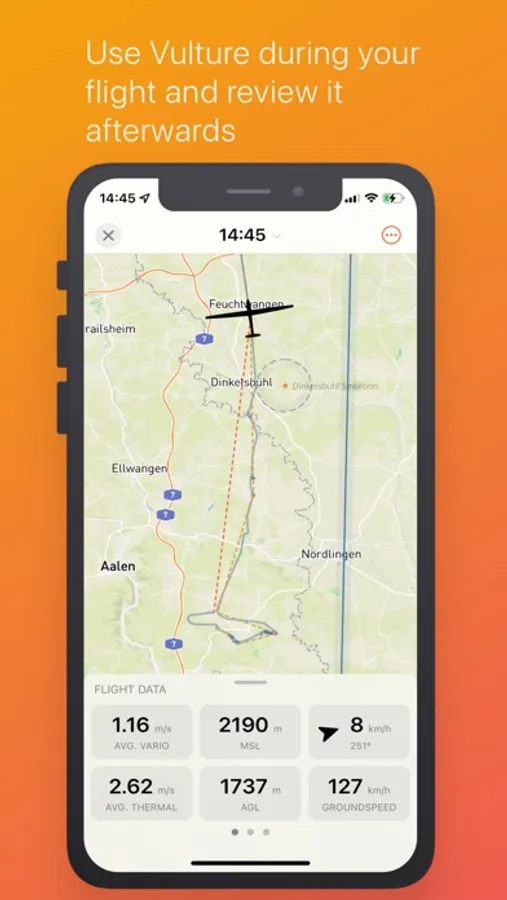 * Fly with Vulture. See the airspace and (optimized) flight information during your flight. And even navigate to your preferred waypoint. Save the flight to Vulture afterward.
