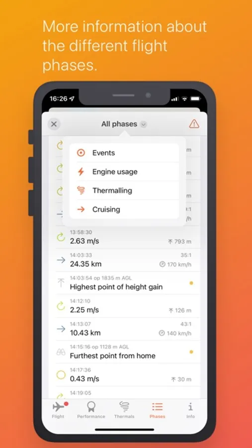* Upload your flights to SkyLines, WeGlide, Soaring Spot, Soaringlab, or the Charron right from the app.