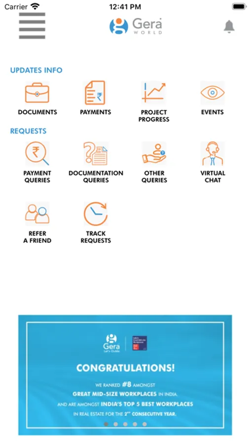 Gera’s World of Joy is a proprietary CRM technology solution designed by Gera Developments Private Limited to provide its customers a hassle-free interaction. Built to enhance customer experience, this mobile application allows customers one touch access for queries and information regarding their purchase. Browsing is delightful with its easy-to-use interface and thoughtful features.
