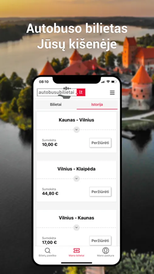 Įsigykite autobuso bilietą per aplikaciją ir taip jo nepaliksite namie ar nepamesite. Jis visuomet bus Jūsų telefone. Jums nereikės spausdinti bilieto - jį vieno mygtuko paspaudimu atsidarysite ir parodysite autobuso vairuotojui telefone.
