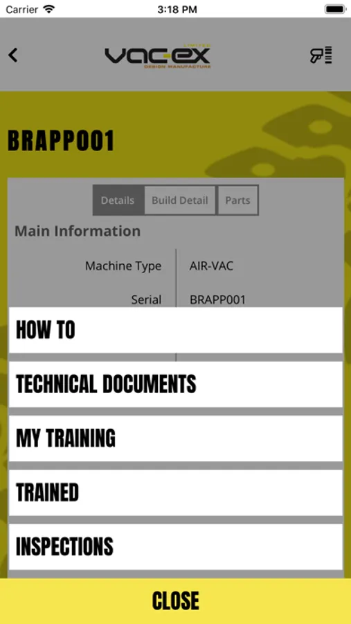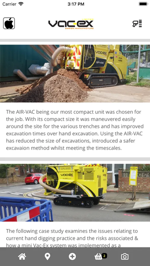 The Vac-Ex Manager App provides easy access to a wide range of information to Vac-Ex customers. The App allows users to carry out daily inspections, see the service history, download user guides and technical information of their machines. Vac-ex owners can also take photos of their machines in action and share with colleagues. Unit location is also available for machines where trackers are fitted.