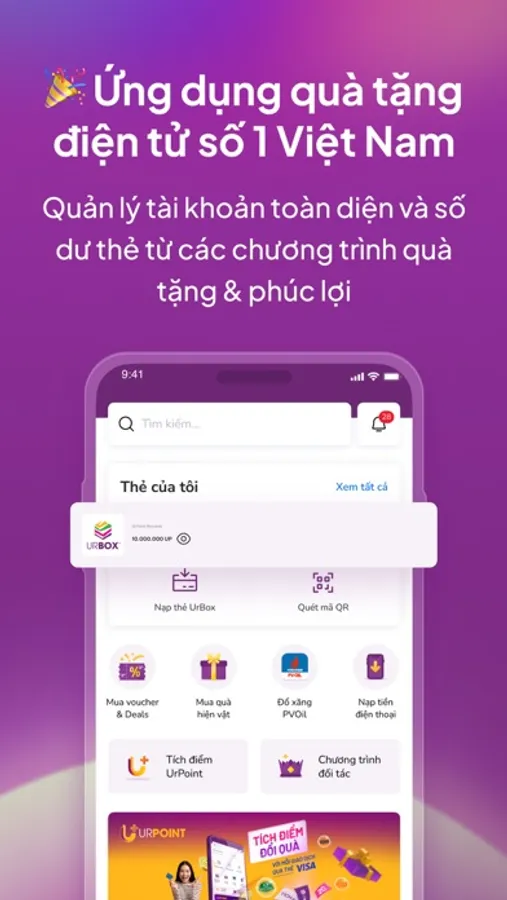 UrBox là nền tảng kết nối các chương trình quà tặng, chương trình chăm sóc khách hàng thân thiết của doanh nghiệp với mạng lưới nhà cung cấp - thương hiệu bán lẻ bao gồm cả online và offline trên thị trường nhằm phục vụ nhu cầu liên quan đến các quà tặng voucher/egift. Người dùng có thể nhận quà qua Email/SMS và sử dụng ngay lập tức tại các hệ thống cửa hàng chấp nhận đổi quà.