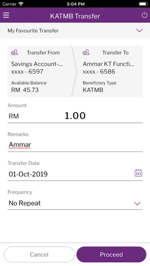 Perform fund transfer to any bank accounts using IBG or DuitNow services.