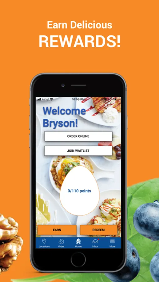 110 points = $10 Reward to use at any Broken Yolk.