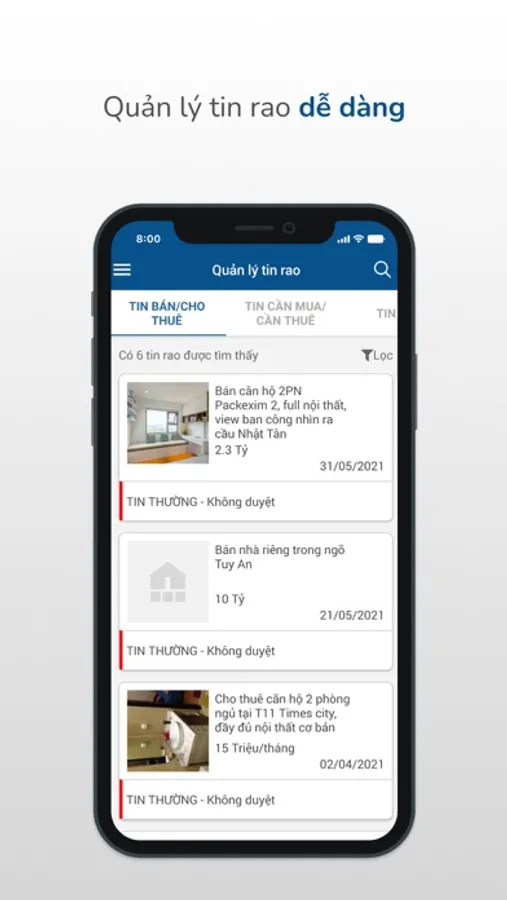 - Quản lý tin rao dễ dàng: Đẩy tin, Đăng lại, Sửa, Xóa, Hạ tin...