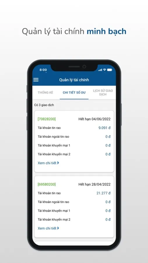 - Quản lý tài chính minh bạch: Thống kê số tiền đã sử dụng, Lịch sử giao dịch, Gói khuyến mại...