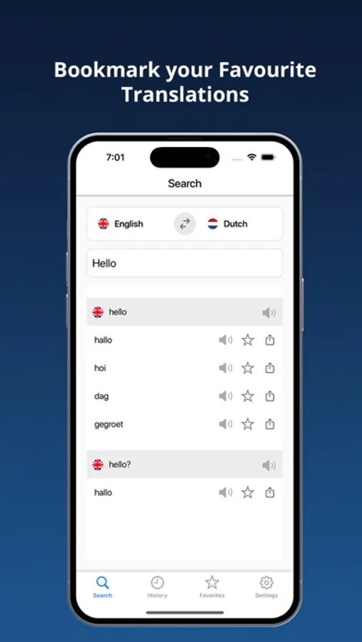 * Bookmark your favorite translations for fast reference