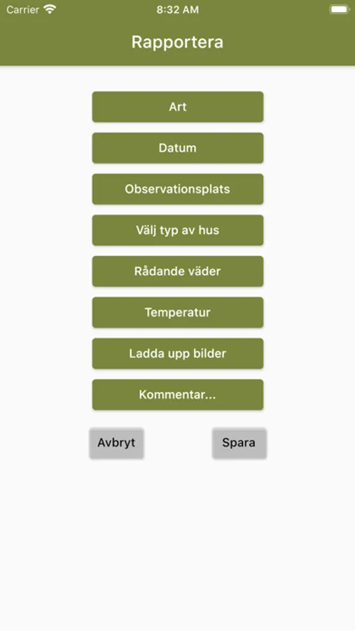 När du har observerat förekomst inomhus, så noterar du i appen vilken art du har sett, när du har sett den, var i landet, i vilken typ av hus/uthus och vilka väderförhållanden som rådde vid observationen. Du kan även ladda upp bilder, t ex om du är osäker på vilken art det handlar om och du kan lämna kommentarer.