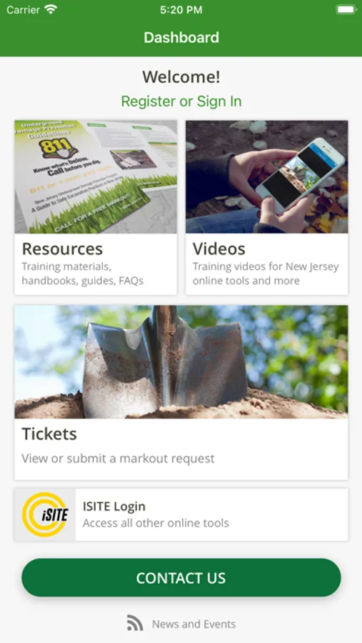 Access a Resource Center with links to the New Jersey One Call handbook, excavator guide, color codes and instructional videos. View and share these items with the click of a button.