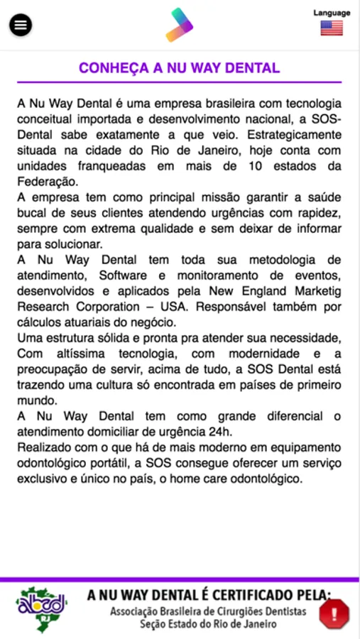 Descontos em tratamentos exclusivos, avaliações e consultas, atendimento de urgência odontologica 24H e a possibilidade de tirar dúvidas são garantidos pelo app. As vantagens vão além. O mundo mudou e a forma de ir ao dentista também, aqui você não precisa perder horas do seu dia tentando encontrar um dentista. Para se conectar basta um clique. 203 Milhões de brasileiros nunca foram ao dentista, mas a Nu Way Dental quer melhorar essa realidade. A Nu Way Dental pensa em pessoas, a Nu Way Dental pensa em dentistas e a Nu Way Dental pensa, principalmente, em você. #sejaonovo