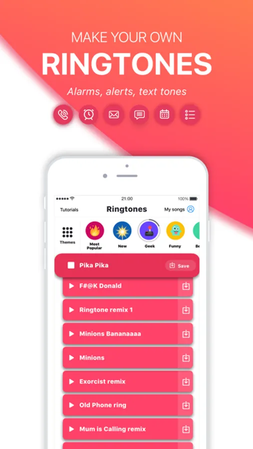 Access thousands of predefined tones for ringtones, text tones, calendar alerts and more to personalize your iPhone!