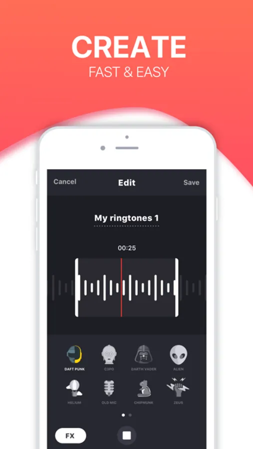 - Add amazing sound effects to any of your sounds (get Premium to access to all the sound effects)