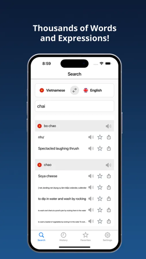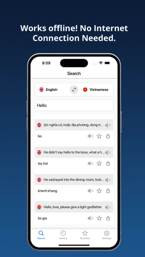 Offline English Vietnamese Dictionary. Over 30,000 words and expressions!
