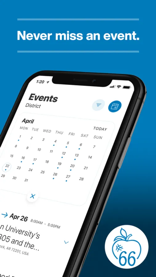 The event section shows a list of events throughout the district. Users can add an event to your calendar to share the event with friends and family with one tap.