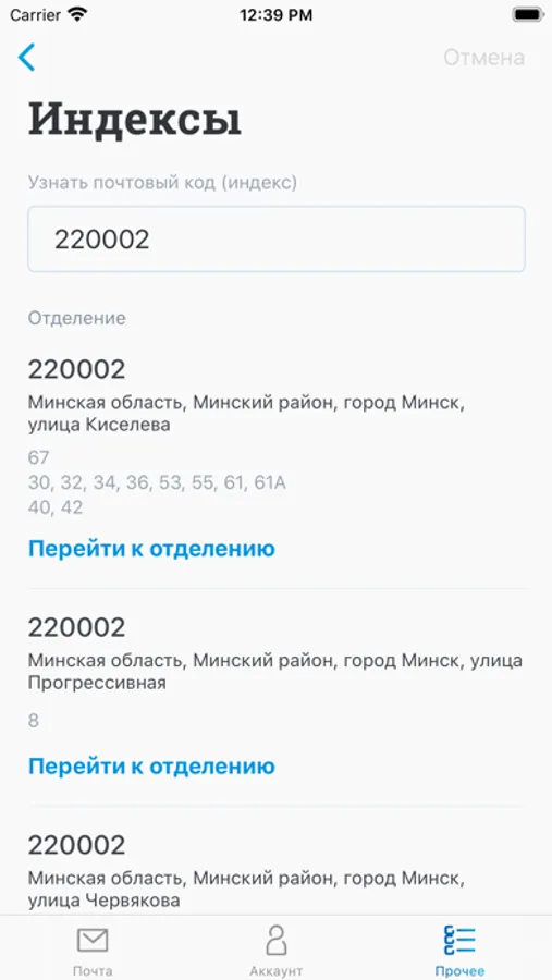 - поиск индекса отделения почтовой связи по адресу получателя для правильного адресования почтовых отправлений