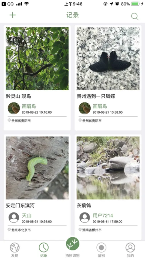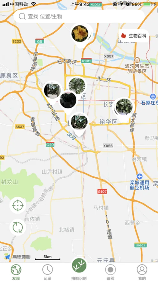 2. 发现:基于生物记大数据,推荐附近观测到的生物,查看周边用户拍摄生物图片。