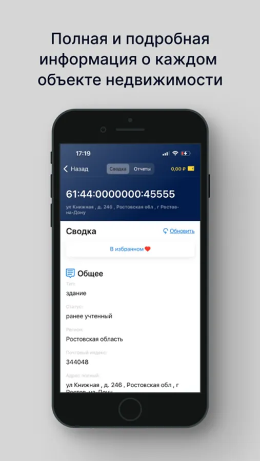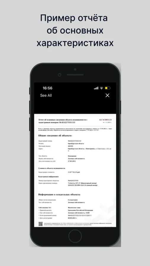 Приложение предоставляет онлайн всю актуальную кадастровую информацию об объекте недвижимости любого региона РФ.