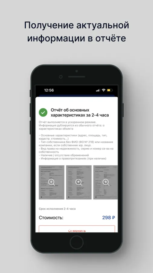 *количество информации и разделов по Вашему объекту будет зависеть от имеющихся кадастр данных в базе Росреестра и от типа отчета. Стоимость от 298 р.