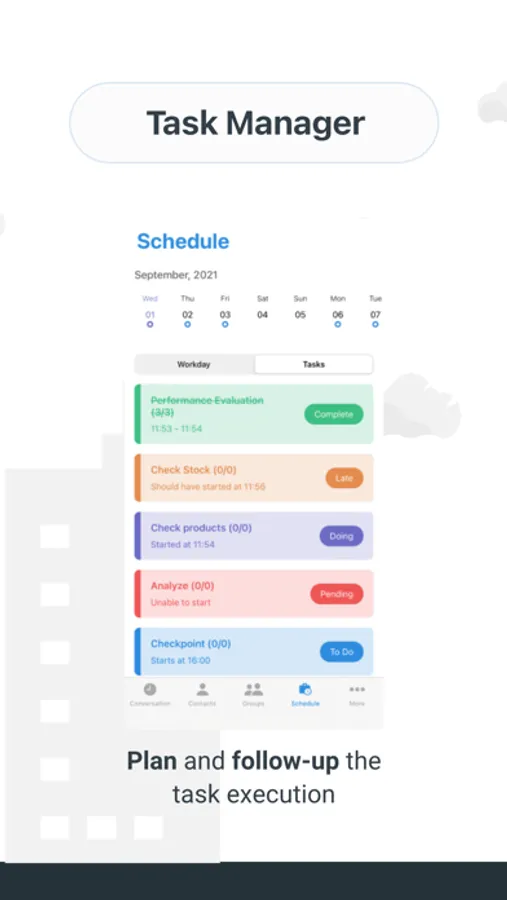Plan and keep track of the task execution. Keep in mind a clear vision from the activities that are being realized by your team. Execution time, period time control, prioritization of tasks and much more in your hands. Have a productive and organized day without unexpected events.