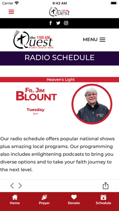 The Quest Atlanta app provides easy access to Catholic content faithful to the teachings of The Church. Listen live or on-demand, stay on top of the latest news, submit a prayer request, make a donation and more. Make the Quest your Atlanta Catholic Radio choice.