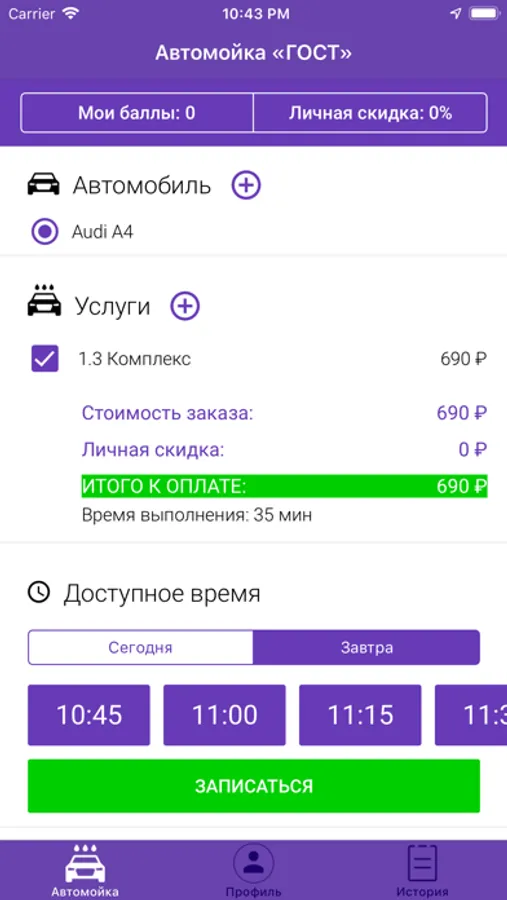 - Видеть все доступные места для записи автомойку;