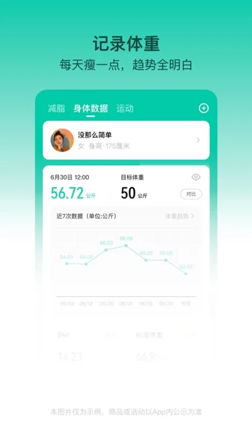 雨晴:超级好用的软件,可以看到减重趋势,体脂趋势和BMI趋势,减肥不是无限节食,还有科学么运动,促进身体代谢,已减重十斤,继续努力