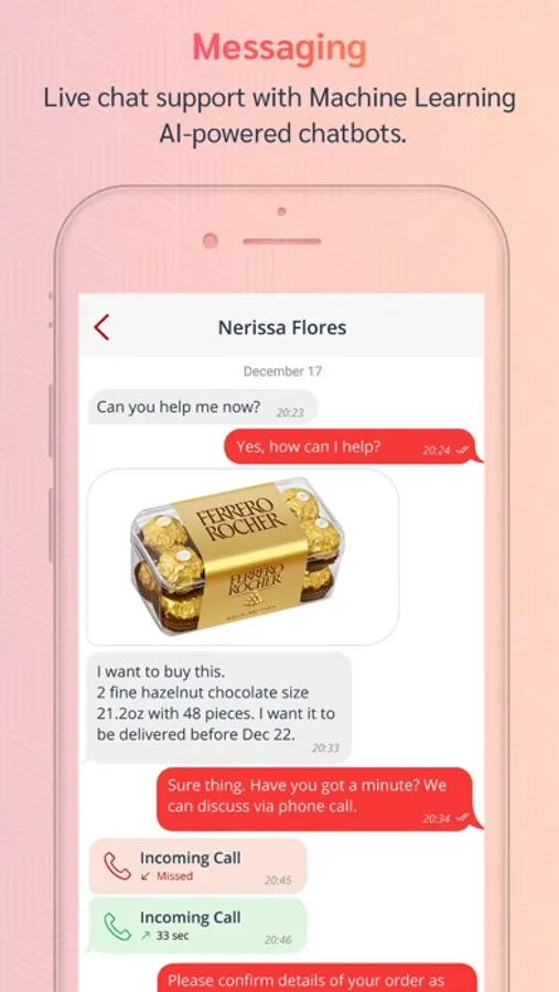 Receive messages, or voice and video calls from your customers all over the world, with the network quality similar to that of local calls.