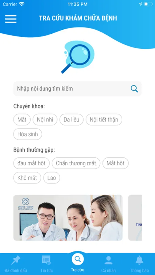 ỨNG DỤNG TRA CỨU KHÁM CHỮA BỆNH